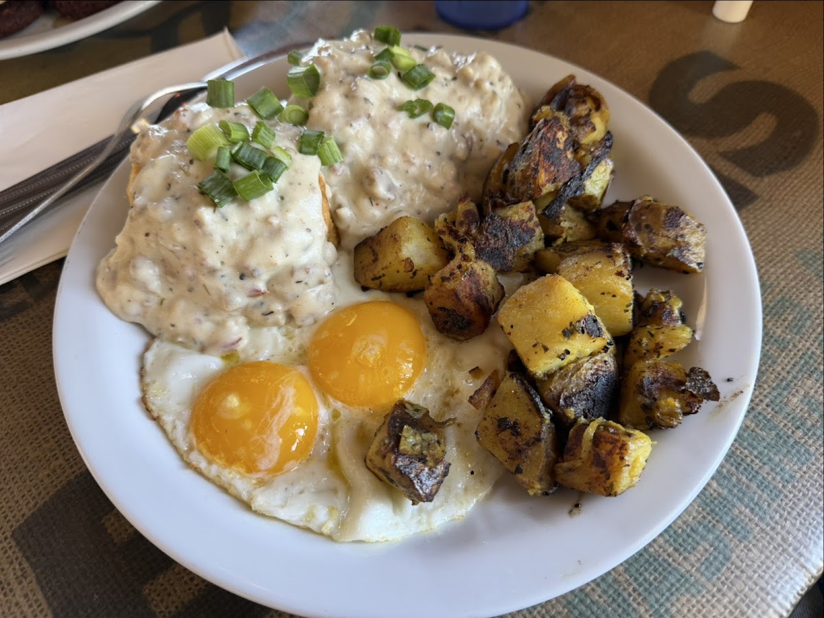 Crossroads Cafe specializes in classic American diner cuisine, making it an ideal spot for breakfast and lunch. Start your day with the Country Breakfast, a satisfying plate of two eggs cooked to your liking, accompanied by home-fried potatoes and a homemade biscuit smothered in rich country sausage gravy for just US$9.75. The flavors are comforting and hearty, perfect fuel for a day of exploration.